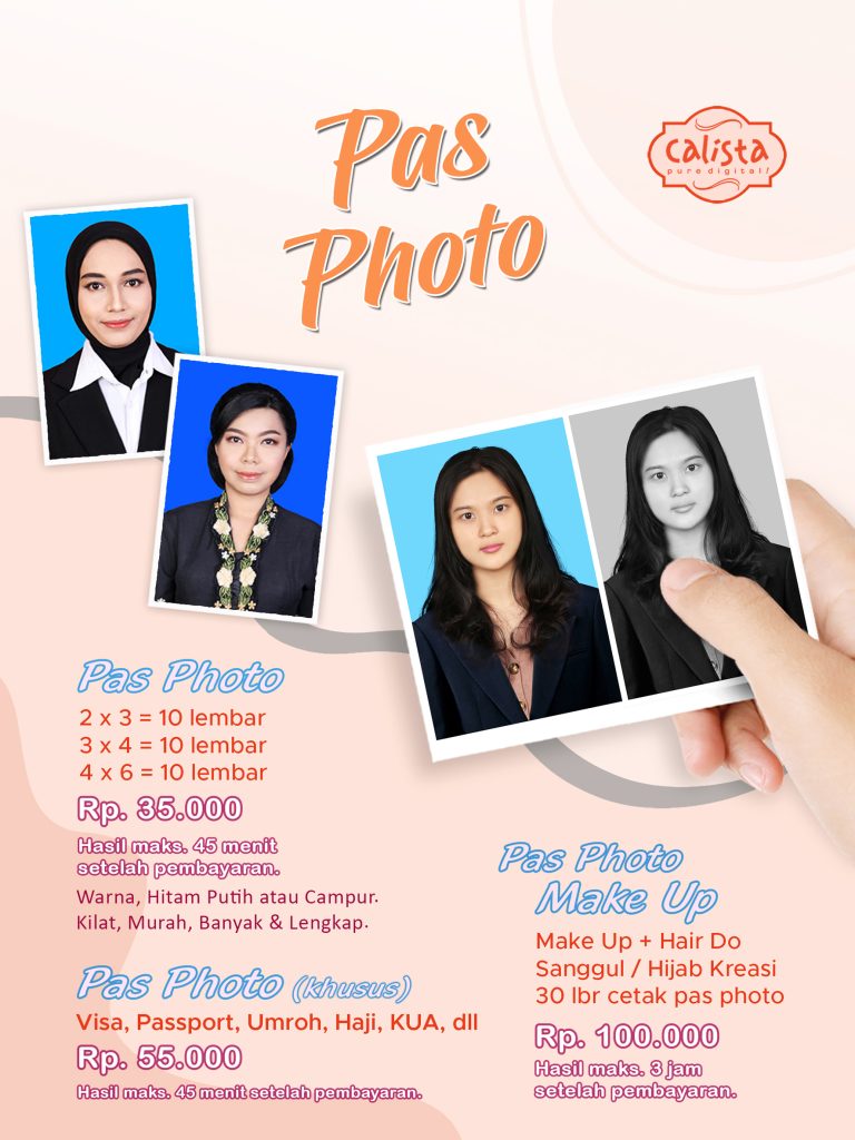 Pas Foto Yogyakarta adalah salah satu layanan yang ditawarkan Calista Photo adalah pas foto yang mencakup pas foto untuk keperluan ijazah, pas foto make-up, umroh, visa, dan pas foto berdampingan. Sesuai tujuan Calista Photo, kami akan memastikan setiap foto dikerjakan oleh ahli profesional dan dikirimkan tepat waktu sesuai kepentingan kamu.